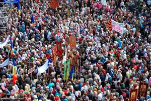 Многие СМИ сообщили, что в шествии, организованном в Москве в день памяти святых равноапостольных Кирилла и Мефодия, приняли участие около 40 тысяч человек.
